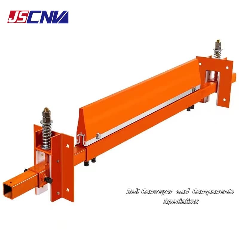 El netejador d'una línia és per a la neteja de la corretja de retorn. S'utilitza principalment davant de la politja de corbat posterior i davant del pesat dispositiu de tensió vertical de la cinta transportadora. Es pot utilitzar especialment per netejar la secció buida del cinturó bidireccional. Té les característiques de resistència a àcids i àlcalis, retardant de flama i antiestàtic, alta resistència al desgast i no danya el cinturó. La fulla està feta de poliuretà d'alta resistència, el disseny en forma de V garanteix la neteja del cinturó i el disseny automàtic de gravetat garanteix la compensació automàtica quan la fulla es desgasta.