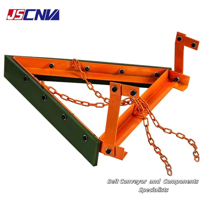 El netejador de corretja V-Plow és un tipus de netejador de corretja de retorn. S'utilitza principalment davant de la politja de corba de la cinta transportadora i davant del dispositiu de tensió vertical pesat. Té les característiques de resistència a àcids i àlcalis, retardant de flama i antiestàtic, alta resistència al desgast i no danya el cinturó. La fulla està feta de poliuretà d'alta resistència, el disseny en forma de V garanteix la neteja del cinturó i el disseny automàtic de gravetat garanteix la compensació automàtica quan la fulla es desgasta.